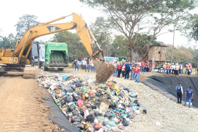 Inaugurado. Momentos donde el nuevo relleno sanitario recibe el primer depósito de desechos sólidos en la celda correspondiente.